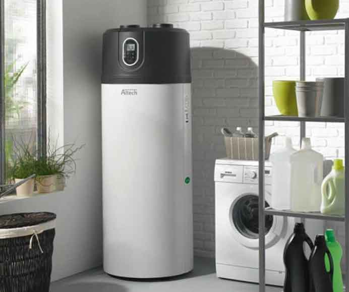 produisent de l'eau chaude pour un usage domestique, comme la vaisselle ou la douche. Ils fonctionnent de la même manière qu'une pompe à chaleur (PAC) aérothermique, qui utilise la chaleur de l'air